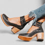 Sandales Élégantes à Talon Bloc de hauteur moyenne, caractérisées par des lanières raffinées et un maintien sécurisé à la cheville. La tige impressionne avec du cuir de haute qualité et des coutures classiques.